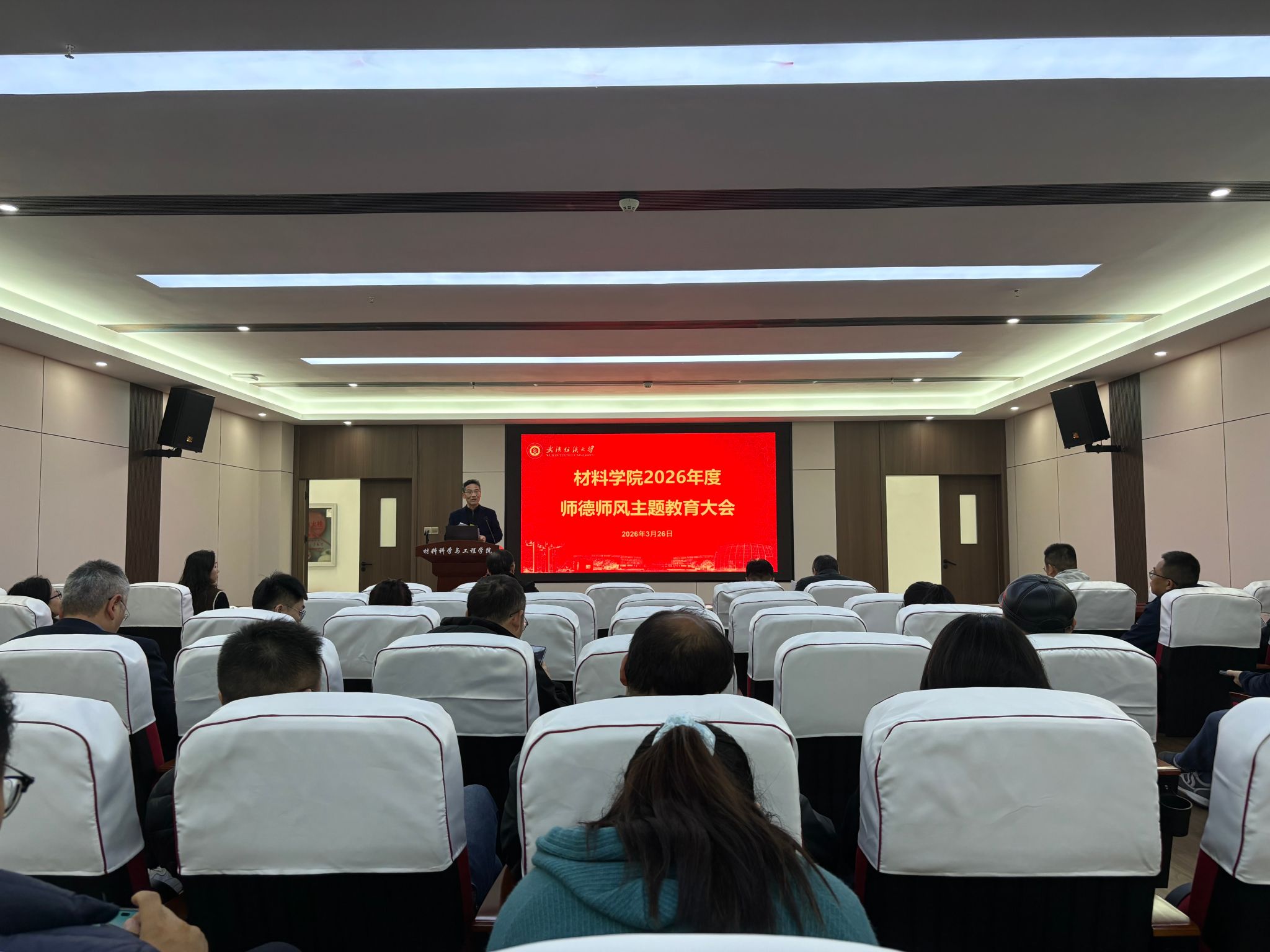 会上,王罗新首先传达学校《关于开展2026年师德师风建设月活动的通知》精神,并详细解读学院活动实施方案。他强调,师德师风是立教之本、兴院之基,全院教师要以高度的责任感投身本次建设月活动,将师德规范内化于心、外化于行,切实扛起立德树人的根本职责。