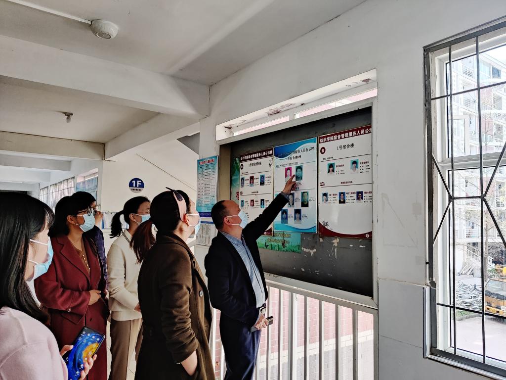 党委副书记候畅、全体辅导员、各年级班主任代表陪同检查并汇报工作。
