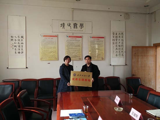 党委副书记秦梦与学院办公室马绪亮老师赴武汉市重点中学武汉三中开展本科生招生宣传工作,武汉三中校长刘平华、分管高三年级的校领导李忠书记、招生办王迪华主任、年级主任张东方和校办汪正旗主任等参加了签约授牌仪式。