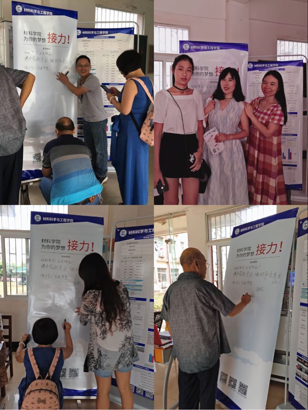 在迎新现场,学院准备了“为梦想接力”展板,邀请各位新生家长在展板上写下对孩子的寄语和期望,新生则写上自己的大学目标和梦想。展板互动部分让新生能够在刚进大学时明确自己的目标,使入学时的“逐梦感”更强烈,提升新生大学入学时期的热情。志愿者们现场给每位学生及家长拍摄全家福,后期由学院冲洗后送给学生作为“入学礼物”,留下难忘的温暖瞬间。
