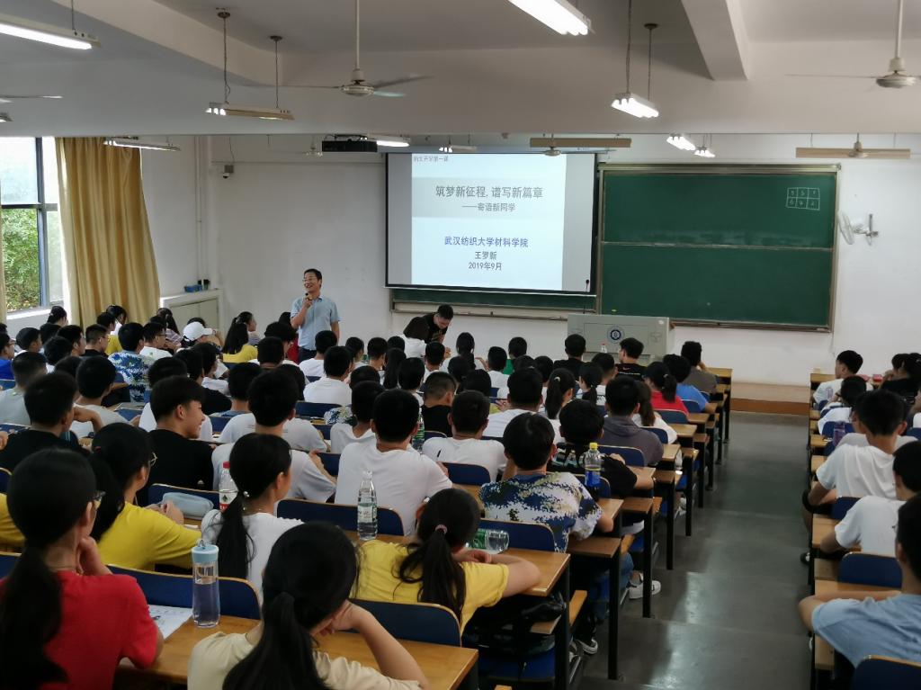 院长王罗新教授为新生上“第一堂专业课”。王院长以“筑梦新征程,谱写新篇章”为题,围绕“材料专业值不值得学”、“大学应该怎么过”两个方面展开了生动的阐述。王院长将材料专业的历史发展脉络及今后的发展前景,向在座新生娓娓道来,把“材料”的丰富内涵阐述得淋漓尽致。接着,王院长就“态度决定一切”,寄语全体材料新生做好人生规划,处理好学习、生活、人际交往等方面的关系,不断锤炼自身品格,夯实基础,做新时代合格的大学生!