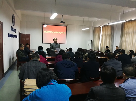 组织全体教师在崇实楼F座506会议室学习全国教育大会精神,会议由学院党委书记罗汉春主持。