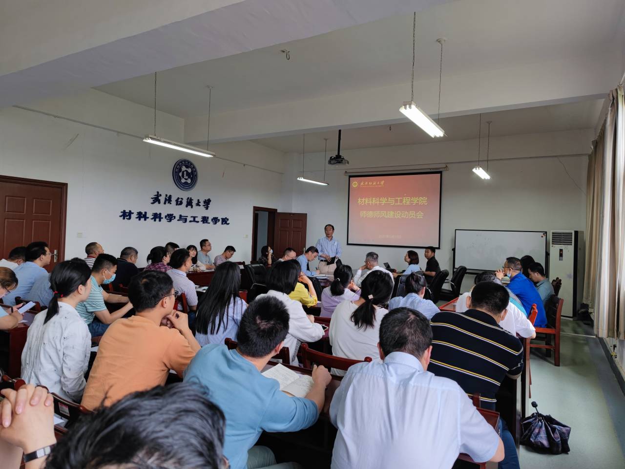 在8F506会议室召开师德师风建设动员会。学院党委书记罗汉春做了专题讲话,全院教职工参加会议。