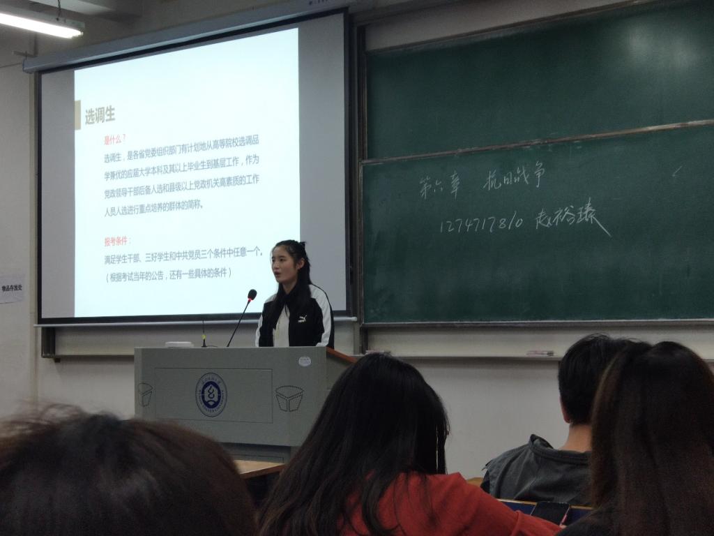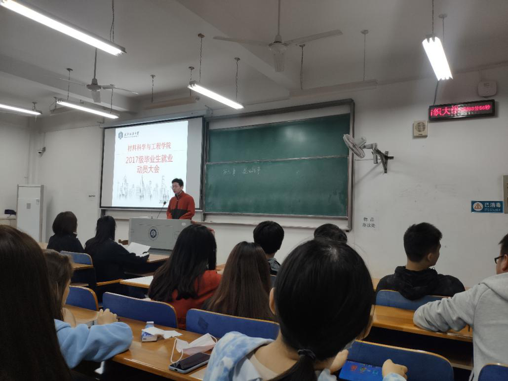 随后由王鑫老师进行分享,从几个方面对应届毕业生进行动员。一方面,帮同学们更加深入了解有关选调生、三支一扶、公务员及省考等方面信息,同时还提供了参军入伍方面的信息;另一方面,王鑫老师和同学们分享了找工作的技巧,并对大家推荐了微信公众号。接下来,侯书记进行讲话,继续就毕业生就业工作进行了详细介绍,与同学们进一步分享找工作技巧,并详细提供考研相关信息。