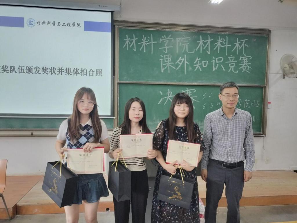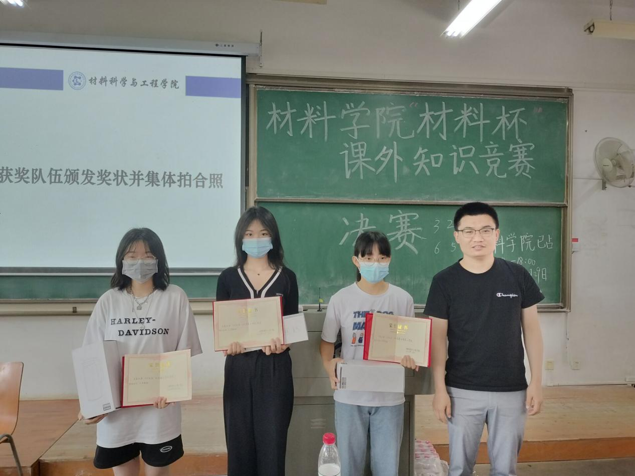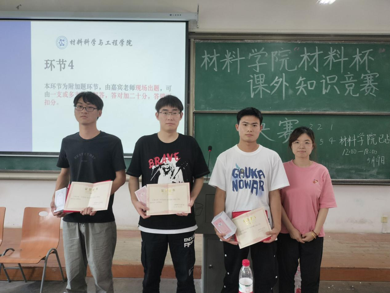 为了丰富同学们的课余生活,营造良好的学术科研氛围,进一步提高学生专业素养,增强团队合作精神和团体凝聚力,91传媒 举办“材料杯”课外知识竞赛决赛,活动于2022年5月29日下午2点在3-118教室举办。91传媒 副院长顾绍金教授、材科12001班班主任鲁振坦、91传媒 辅导员毛成兴老师、曾玉竹老师受邀并出席本次竞赛。