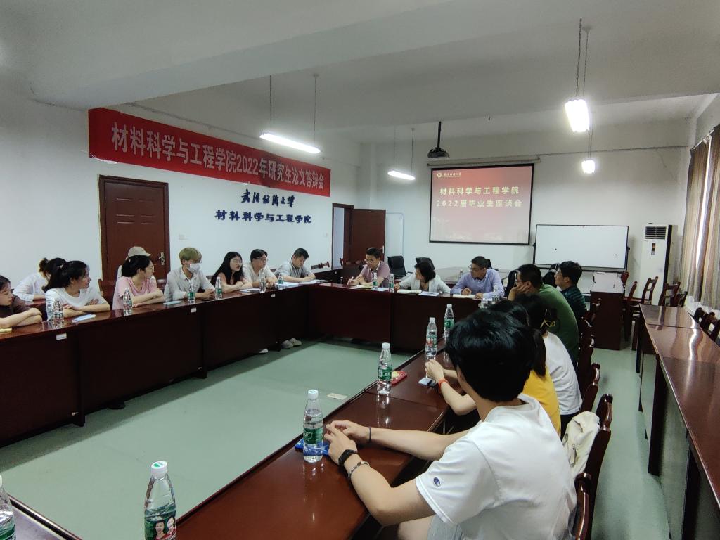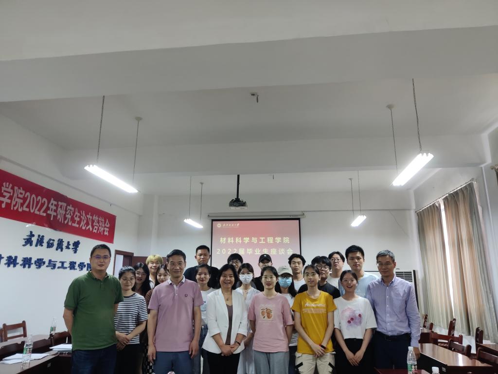 举办毕业生代表座谈会暨校友联络员聘任大会,院党委书记陈桂枝,院长王罗新,副院长顾绍金、刘欣,复合材料系主任孙九霄老师,辅导员胡晓、曾玉竹,2022届毕业生代表,校友联络员参加会议,会议由陈桂枝书记主持。