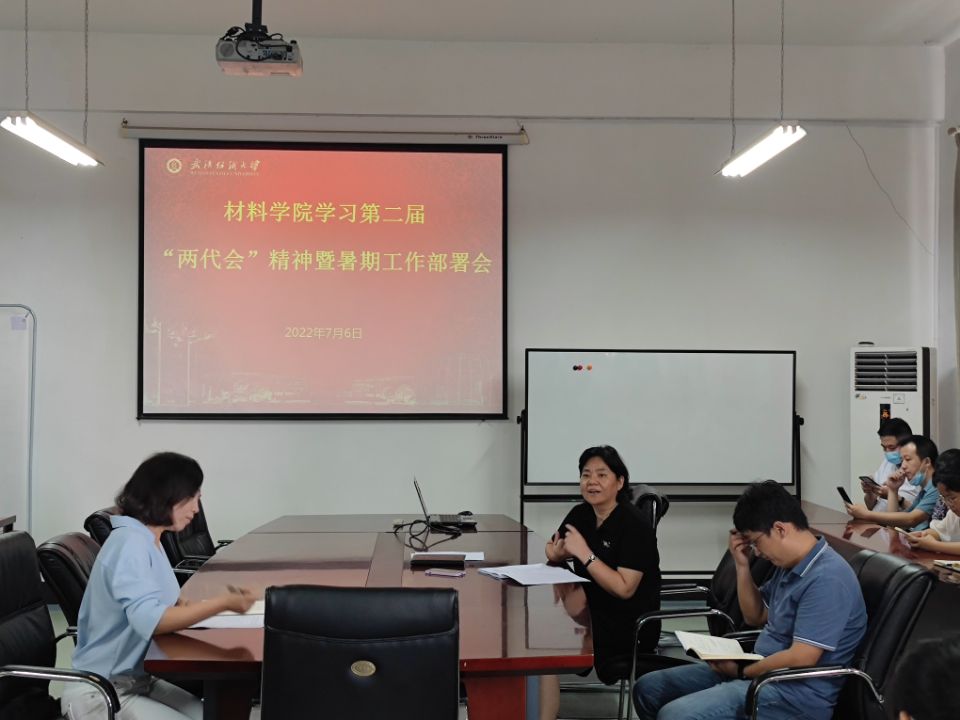 在崇实楼8F506会议室组织学习学校第二届教职工代表大会会议精神暨2022年暑期工作布置会。会议由学院党委书记陈桂枝主持,全体在汉教职工参加了本次会议。