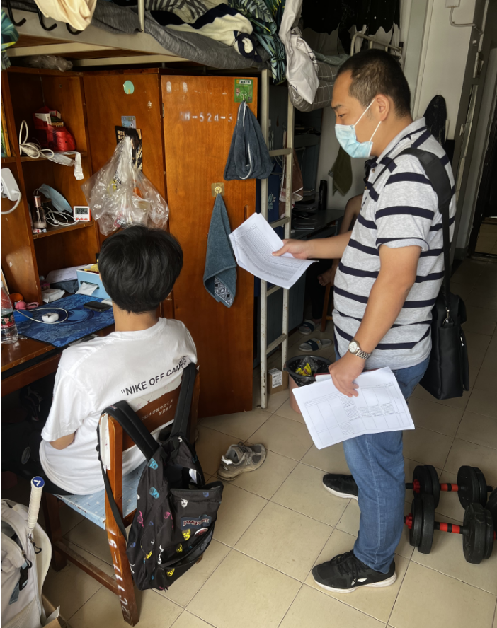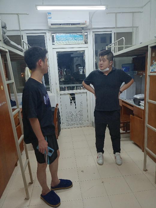 2021级、2020级辅导员毛成兴深入学生寝室,就学生学业发展及日常生活中的问题进行一一问询,与学生们谈话谈心,特别是对学业困难的同学进行教育引导,鼓励其做好学习规划,注意寝室卫生,将更多经历投入到学习中来。