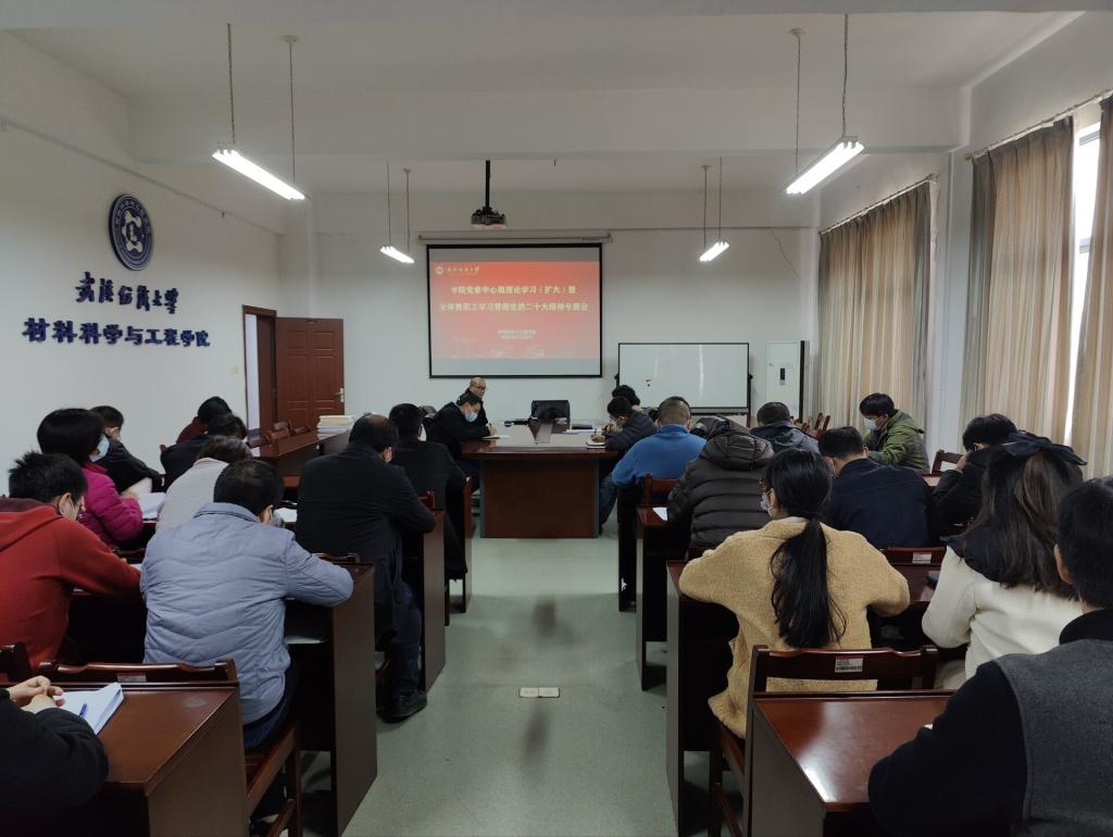 姜教授首先阐释了党的二十大主题和召开的意义,并从新观点、新论断、新思想,新征程新使命,新任务新部署等几个方面全面阐释了党的二十大精神和内涵。重点从马克思主义中国化时代化的新境界、中国式现代化,科教兴国、人才支撑等几个方面,并结合学校工作实际对党的二十大报告进行深入解读。党的二十大报告凝练总结了过去五年的工作和新时代十年的伟大变革,在面临“四大挑战”的同时经历了“迎来中国共产党成立一百周年,中国特色社会主义进入新时代,完成脱贫攻坚、全面建成小康社会的历史任务,实现第一个百年奋斗目标”三件大事,取得了党和国家事业发展的十六个方面的历史性成就和历史性变革。党的二十大报告指出,中国式现代化,是中国共产党领导的社会主义现代化,既有各国现代化的共同特征,更有基于自己国情的中国特色。中国式现代化是人口规模巨大的现代化,是全体人民共同富裕的现代化,是物质文明和精神文明相协调的现代化,是人与自然和谐共生的现代化,是走和平发展道路的现代化。姜教授结合湖北省和我校实际,认为材料师生在科教兴国战略实施过程中大有可为。