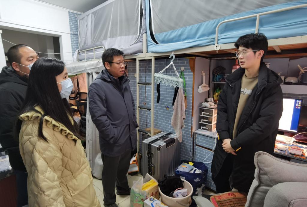 2月12日晚班会结束之后,副书记、辅导员深入学生宿舍,与学生进行亲切的交谈,嘱咐同学们积极准备期末考试,告诫同学们时刻注意人身财产安全,谨防诈骗,认真询问学生是否有生活或者学习上的问题,及时跟老师们沟通交流。希望同学们快速适应,尽快进入学习状态。