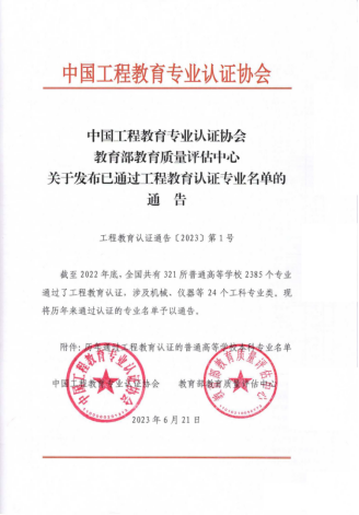 近日,中国工程教育专业认证协会和教育部教育质量评估中心联合发布《关于发布已通过工程教育认证专业名单的通告》(工程教育认证通告〔2023〕第1号),本次全国共有441个专业(含复评专业)通过工程教育专业认证,我校复合材料与工程专业名列其中。至此,91传媒