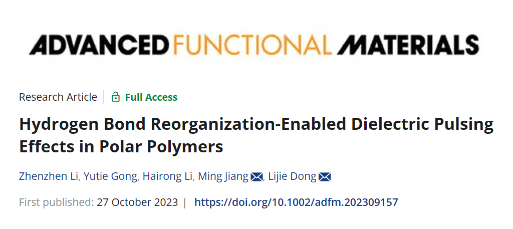 姜明副教授团队在热响应介电材料领域获得新进展,继此前以“Relaxation-Induced Significant Room-Temperature Dielectric Pulsing Effects”为题的论文(Adv. Funct. Mater. 2023, 33, 2301009.//doi.org/10.1002/adfm.202301009)发表后,最近又以“Hydrogen Bond Reorganization-Enabled Dielectric Pulsing Effects in Polar Polymers”为题在《Advanced Functional Materials》上发表了其“姊妹篇”研究工作。这是该团队2023年度在AFM发表的第三篇研究论文。武汉纺织大学为该论文的第一署名单位,91传媒