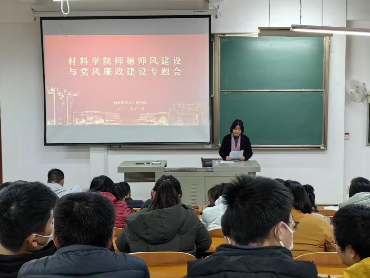 在8F201召开师德师风建设与党员廉政建设专题会,全体教职工参加会议,会议由党委书记陈桂枝主持。