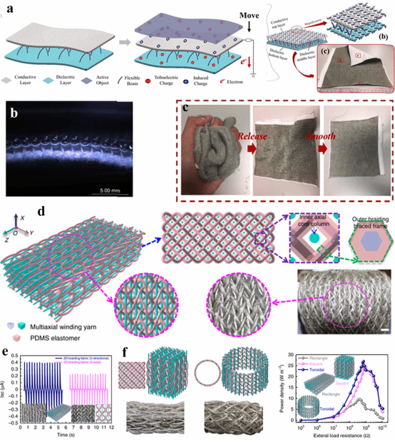 图3 二维-核壳电极结构的纺织基摩擦纳米发电机