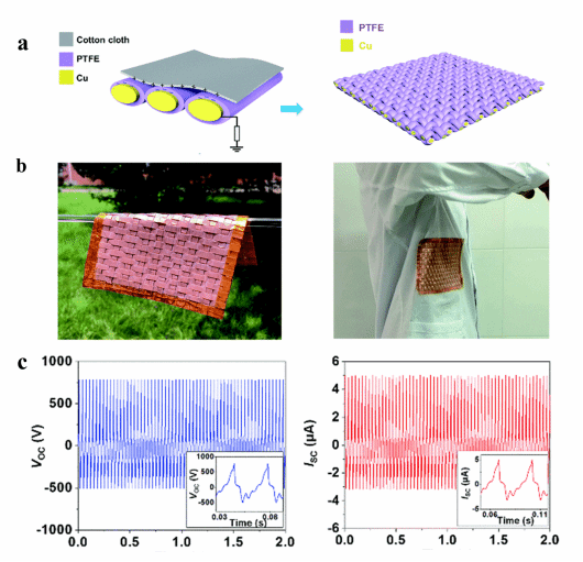 图5 二维-并联电极纤维结构的纺织基摩擦纳米发电机