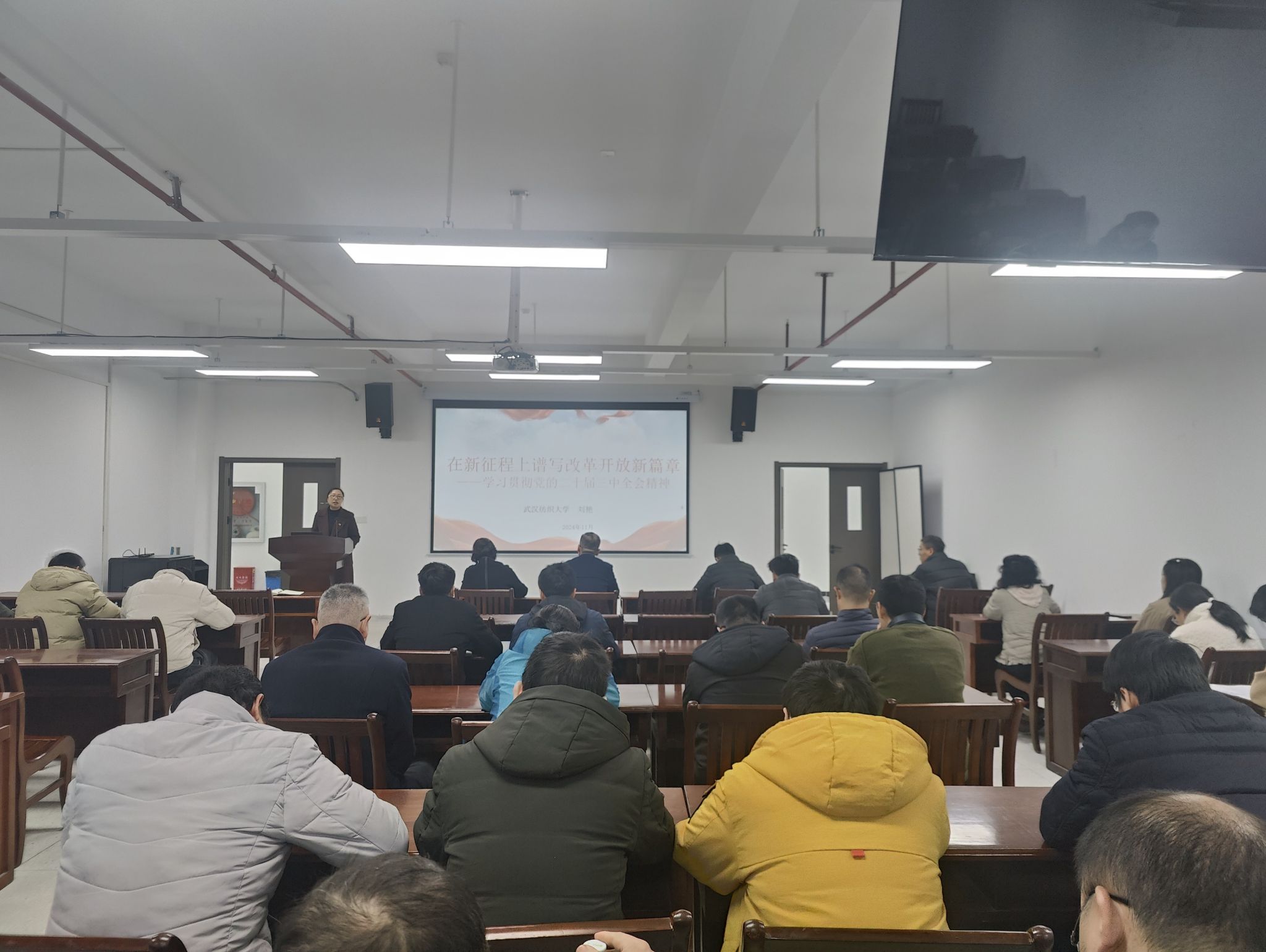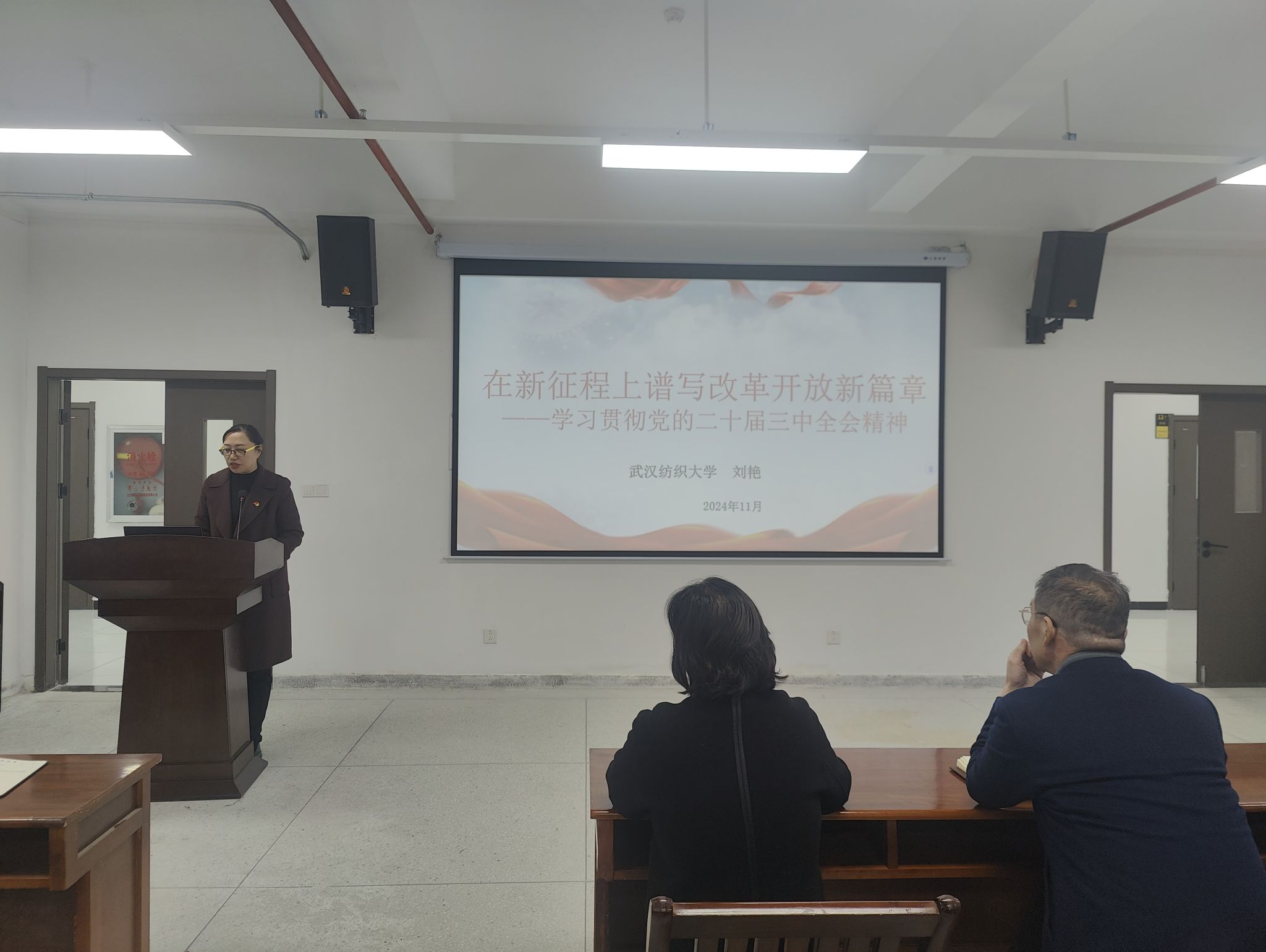 特邀学校党的二十届三中全会宣讲团成员、马克思主义学院副院长刘艳教授进行专题宣讲,院领导班子及全体教职工参加会议,学院党委书记陈桂枝主持。