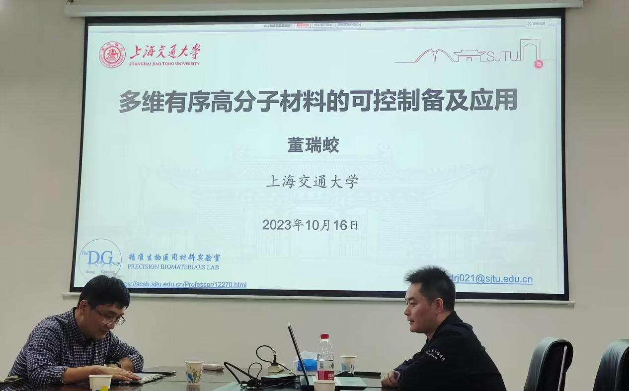 2023年第8期阳光论坛本次论坛.本次论坛特邀报告人为我校2002级高分子专业毕业优秀校友董瑞蛟特别研究员。报告的主题是“多维有序高分子材料的可控制备及应用”。
