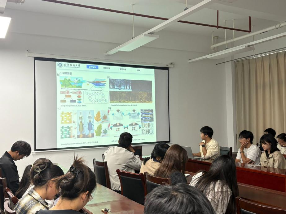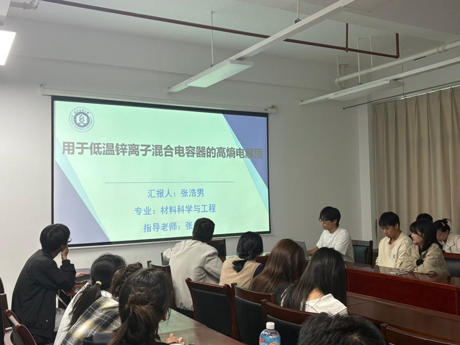 承办,刘琼珍,李宗宝两位老师担任轮值老师,学院研究生刘婉君、林云、张浩男三位同学围绕“高性能纤维及能源材料”主题,依次汇报了最新科研进展,集中展示了学院在纤维增强、电致变色、高熵电解液及柔性储能等方向的前沿探索成果。