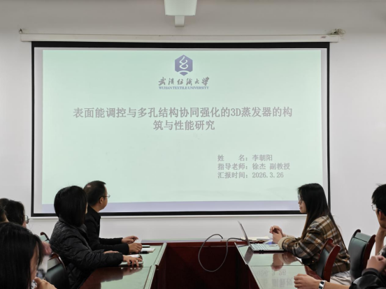 在阳光校区成功举办了2026年第3期研究生学术论坛。本次论坛由吴静、柏自奎两位老师担任指导评委。学院硕士研究生李朝阳、周安鹏、胡胜、吴昊达四位同学围绕材料科学前沿领域,依次汇报了最新科研进展,集中展示了学院在太阳能水蒸发、纳米材料合成、催化材料设计及固态电池电解质等方向的前沿探索成果。