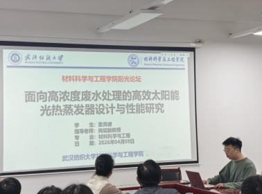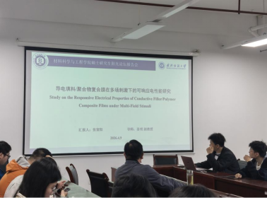 承办,刘晓洪、刘琼两位老师担任轮值老师,学院研究生张学良、张留阳、焦良宇、詹民睿、四位同学围绕新型发光材料、柔性导电复合材料、生物基功能材料、高浓度废水处理等前沿方向展开汇报,全方位展现了学院在材料科学领域的创新突破与科研实力,为师生搭建了高质量的学术交流与成果转化平台。