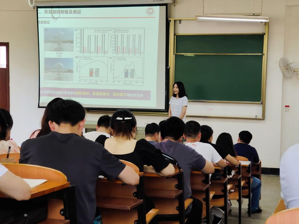 张襄宜以仿三明治多层光热蒸发器的制备与水纯化研究为题,提出了多个吸光层和吸水层组成的、有别于传统模式的蒸发器,可实现高水分蒸发速率,优于大多数材料,为接下来的应用和研究拓展了新途径。