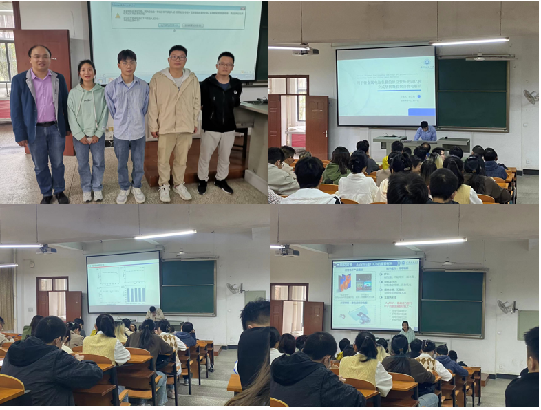 首先,赵云杨同学介绍了以“用于锂金属电池负极的原位紫外光固化独立式坚韧凝胶聚合物电解质”为主题的研究内容,他详细介绍了该材料具有的低成本、无泄漏、高锂离子电导率的优秀性能,以及在锂离子电池领域的应用前景。接下来,冯祥介绍了他的研究题目:“笼型聚倍半硅氧烷改性制备功能棉织物”,分享了改性纤维制备的方法以及其在表征方面的重要性其实际应用性能。最后,陈秋穗报告了“基于超声介质的置换法快速合成银钠米线及其应用研究”,分享了该材料具有的优异导电性能、稳定化学性能、良好的机械性能,报告了其在柔性电子产品领域的潜力和应用。