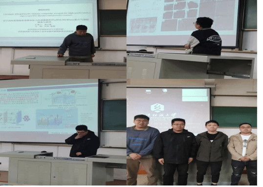 首先,许浩介绍了他的研究成果,题为“电化学制备Cu@Ag复合粉体的初探及催化应用研究”。他通过电化学方法成功制备出Cu@Ag复合粉体,并深入研究其在催化应用中的潜力;他的研究不仅拓展了复合粉体的制备方法,还为催化材料的设计提供了新思路,对于促进环境友好型催化技术的发展具有重要意义。接下来,郑文峰详细介绍了他的研究题目:“用于高性能超级电容器和压力传感器超轻PPy@PVA/BC/Mxene复合气凝胶制备与研究”,他的研究聚焦于超轻型PPy@PVA/BC/Mxene复合气凝胶的制备与性能研究,旨在解决高性能超级电容器和压力传感器中材料轻量化的需求。最后,黄超报告了“基于聚丙烯烃改性的超高分子量聚乙烯锂电池回收膜的加工应用研究”。他致力于研究聚丙烯烃改性对超高分子量聚乙烯锂电池回收膜的影响,并探索其在电池回收领域的加工应用。