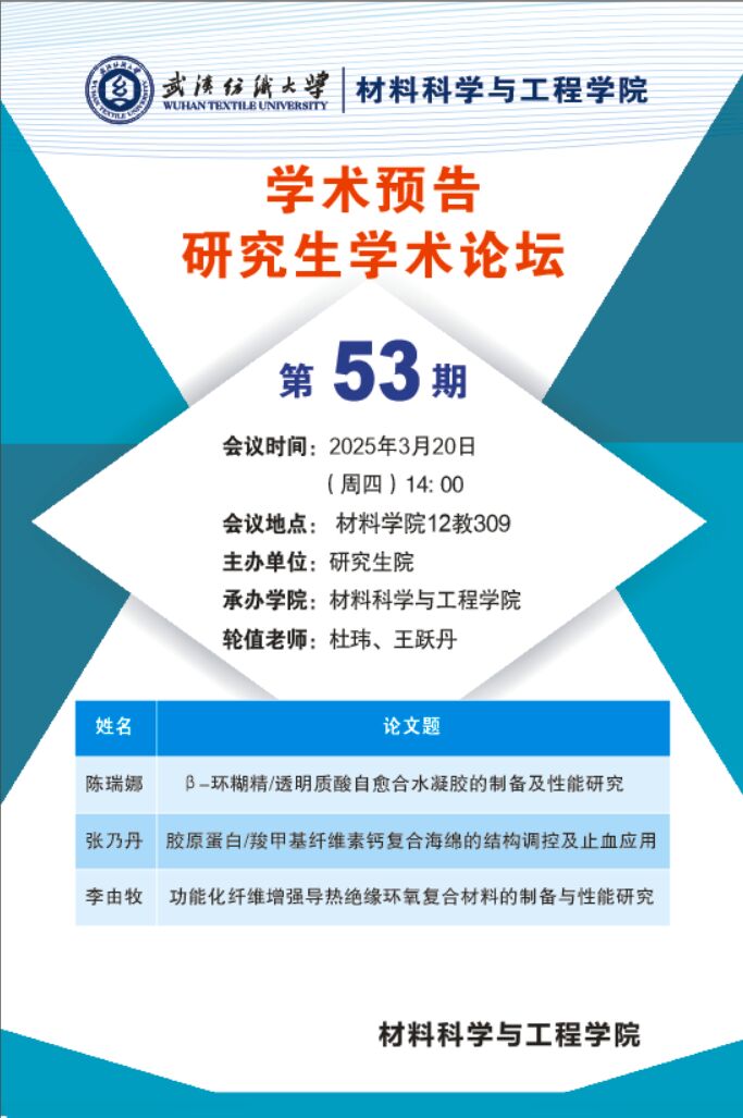 举办了2025年第5期学术论坛,本次论坛由王星和张春华两位老师担任主持,来自22级研究生夏甜甜、王佳琪、刘雪阳三位同学展示了新型复合材料领域的科研成果。