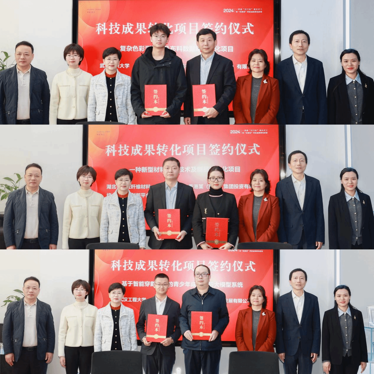 在现场领导和嘉宾的见证下,“复杂色彩测量仪及布料数据库建设”、“一种新型材料制热技术及制品”、“基于智能穿戴硬件的青少年成长分析大模型系统”等3个项目进行了科技成果转化签约。