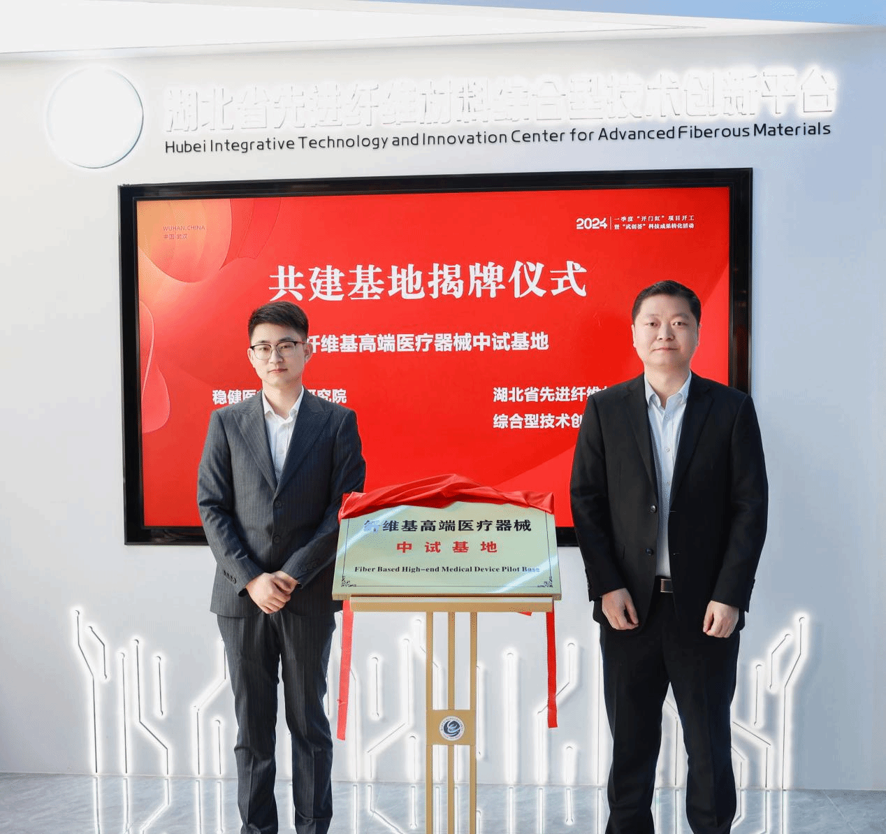 为了进一步推进成果转化,平台与深圳华中科技大学研究院共建“新材料与智能制造概念验证基地”,与稳健医疗创新研究院共建“纤维基高端医疗器械中试基地”,并在2023年首届先进纤维材料产业高质量发展论坛上进行签约。经过前期筹备,在本次活动上,“新材料与智能制造概念验证基地”“纤维基高端医疗器械中试基地”正式揭牌。此次揭牌标志着平台将在新材料、智能智造、生物医用材料等交叉领域进行技术创新与转化,依托基地开展系统性概念验证和中试工作,促进科技成果转化加快转化为现实生产力。