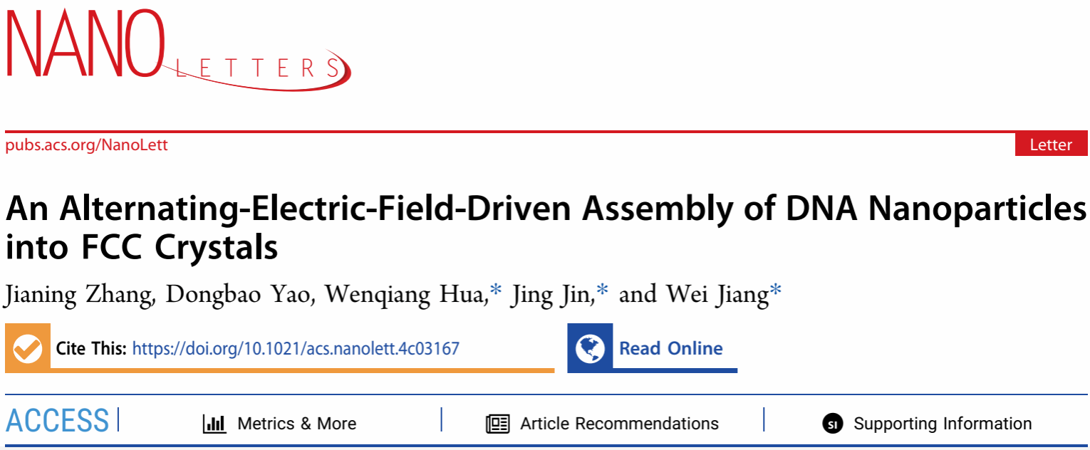 姜伟教授团队在《Nano Letters》期刊上发表了题为“An Alternating-Electric-Field-Driven Assembly of DNA Nanoparticles into FCC Crystals”的论文。91传媒
