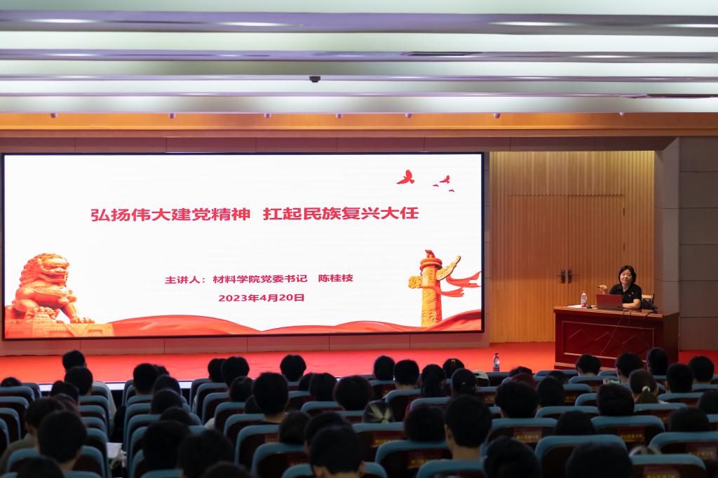 课上,陈桂枝强调了学习宣传贯彻党的二十大精神是当前和今后一个时期全党全国的首要政治任务,我国会以中国式现代化推进中华民族伟大复兴,不断为人类作出新的更大贡献。接着,陈书记从伟大建党精神的历史渊源、丰富内涵、时代价值和习近平总书记对青年的寄语等四个方面展开,为同学们上了一堂深刻的党课。