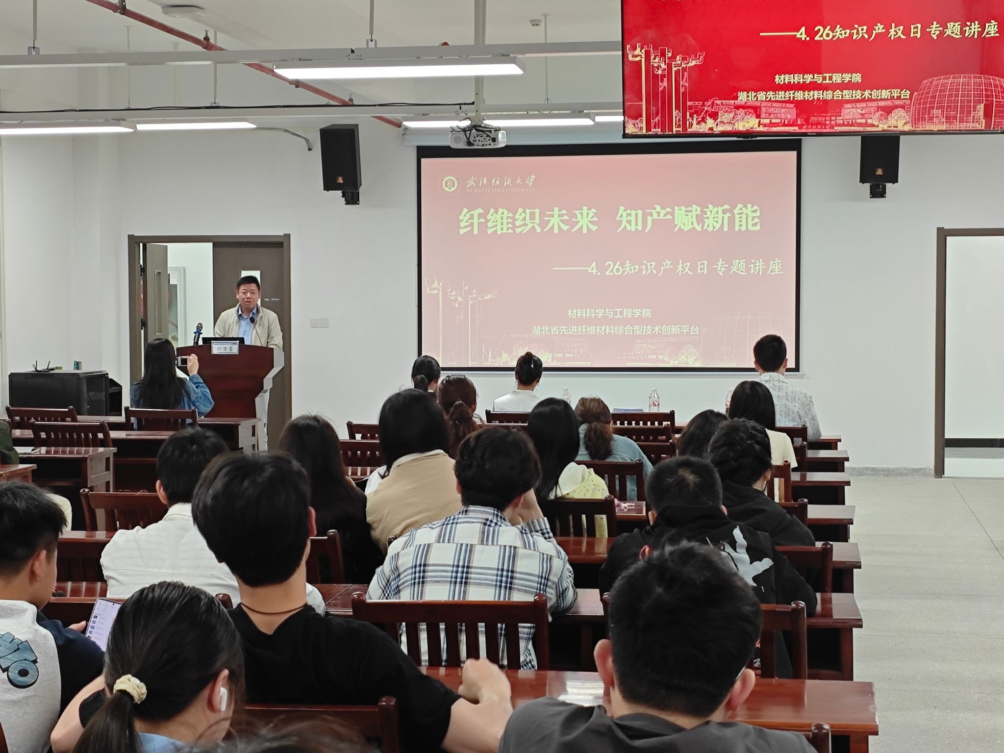 在“世界知识产权日”来临之际,于4月22日下午在阳光校区12-317教室举行“纤维织未来·知产赋新能”知识产权专题分享活动。本次论坛邀请湖北省先进纤维材料综合型技术创新平台胡佳蕾担任报告人,开展专利申报的专题分享。活动由学院学生工作负责人主持,吸引了80余名研究生参加。