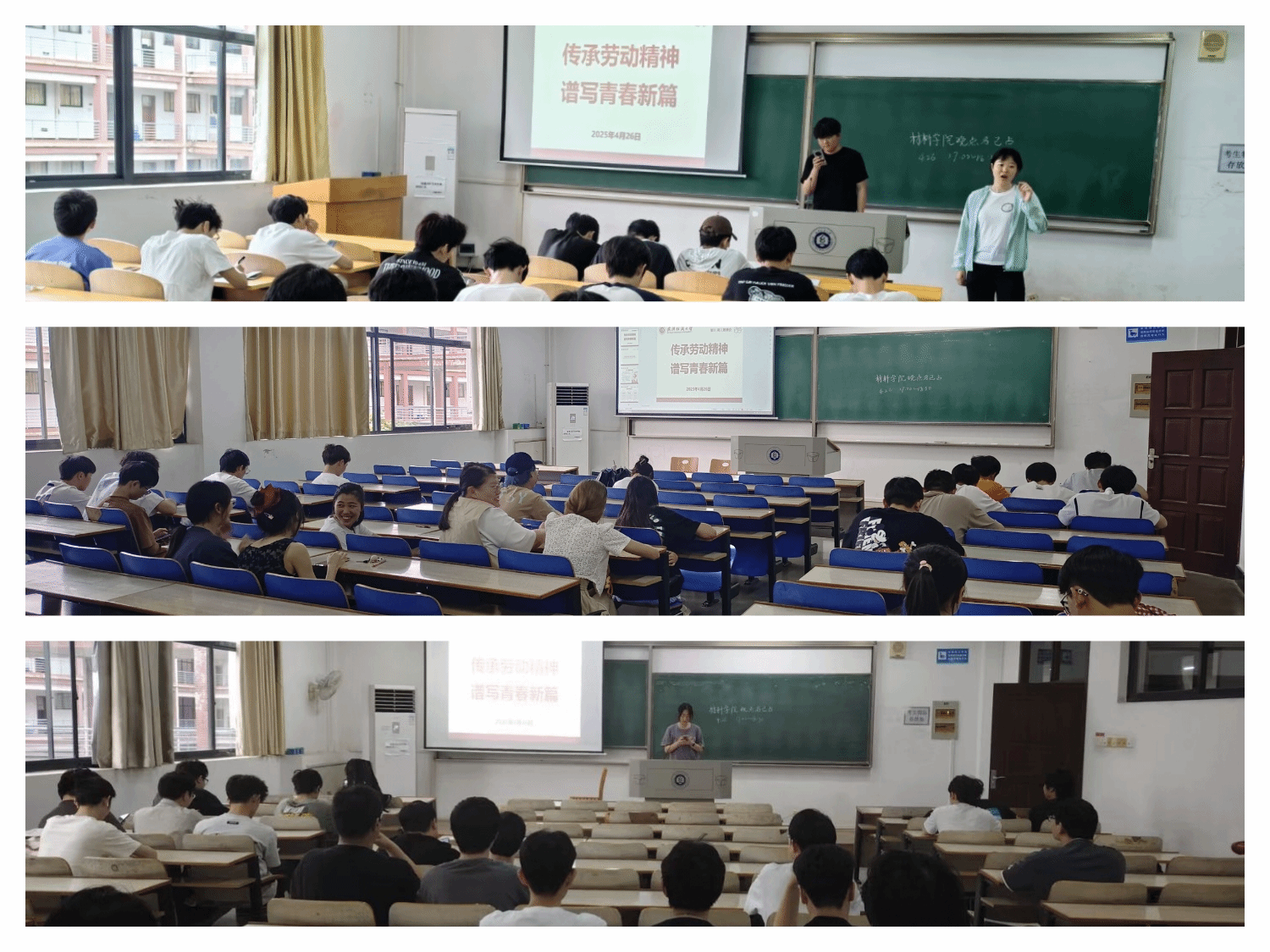 班会上,辅导员首先深入讲解了劳动节相关知识。追溯至1889年,第二国际成立大会将每年5月1日定为国际劳动节,以此纪念劳动者的奋斗抗争。劳动节不仅是对劳动者贡献的表彰,更是对劳动价值的尊崇,通过宣传劳动法规,推动社会重视劳动价值、保护劳动者权益。同时,恰逢中华全国总工会成立一百周年,回顾其自1925年在广州成立以来,在革命、建设、改革等不同历史阶段,团结带领广大工人阶级所作出的卓越贡献。对于劳动精神的探讨是班会核心内容。详细阐释劳模精神中爱岗敬业、争创一流等具体内涵,通过讲述孟泰、赵梦桃等劳模的动人故事,让同学们真切感受劳动模范的榜样力量;强调劳动精神所倡导的崇尚劳动、热爱劳动等理念,鼓励同学们在日常学习生活中践行;剖析工匠精神里执着专注、精益求精的品质,激励学生在专业学习中追求卓越。此外,班会还结合五一假期,发布放假通知并开展安全教育。从宿舍安全的用电防火细节,到出行安全的遵守交规提醒;从谨防电信诈骗的案例警示,到饮食安全的健康常识普及,全方位为学生假期及日常安全保驾护航。