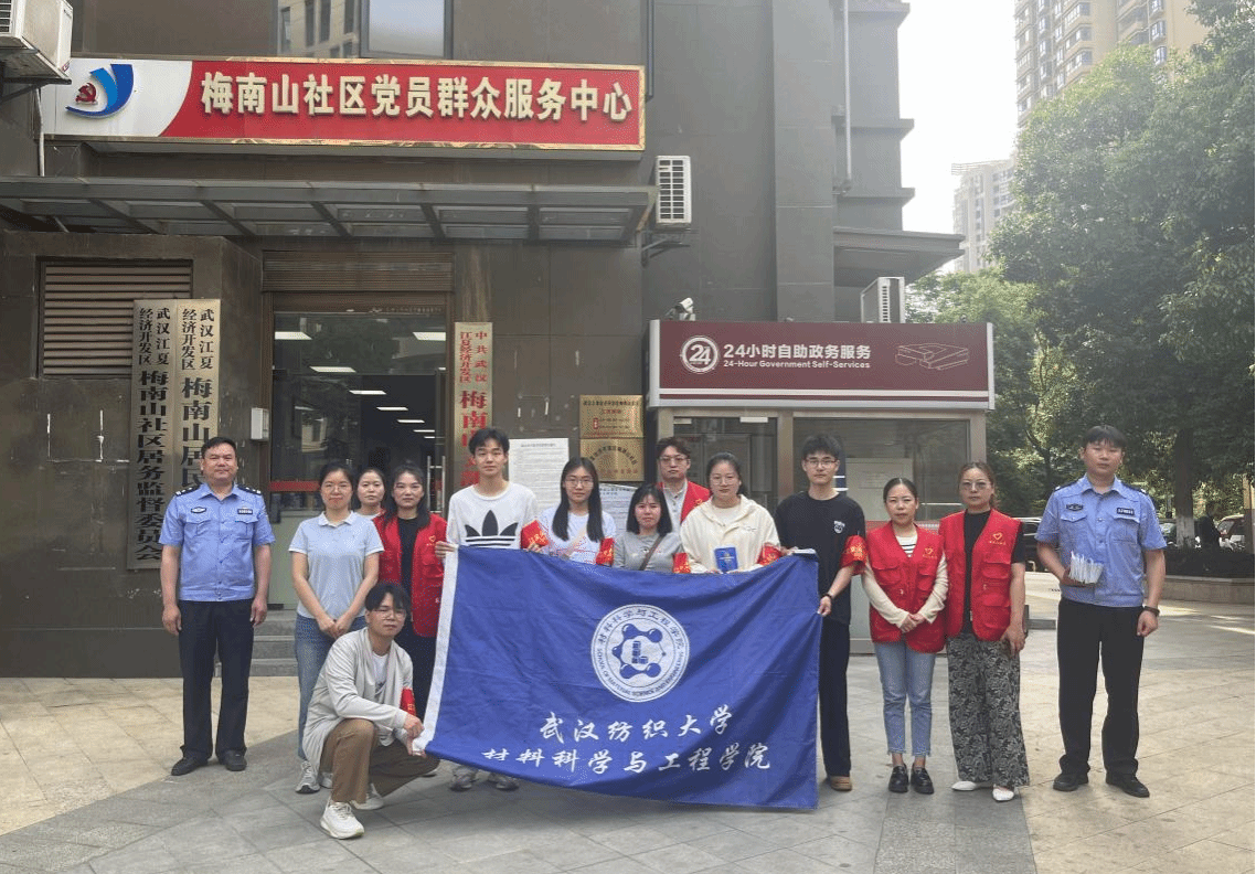研究生党员先锋队与庙山派出所共同深入梅南山社区开展防诈骗宣传活动,将劳动精神与青年担当融入志愿活动中。