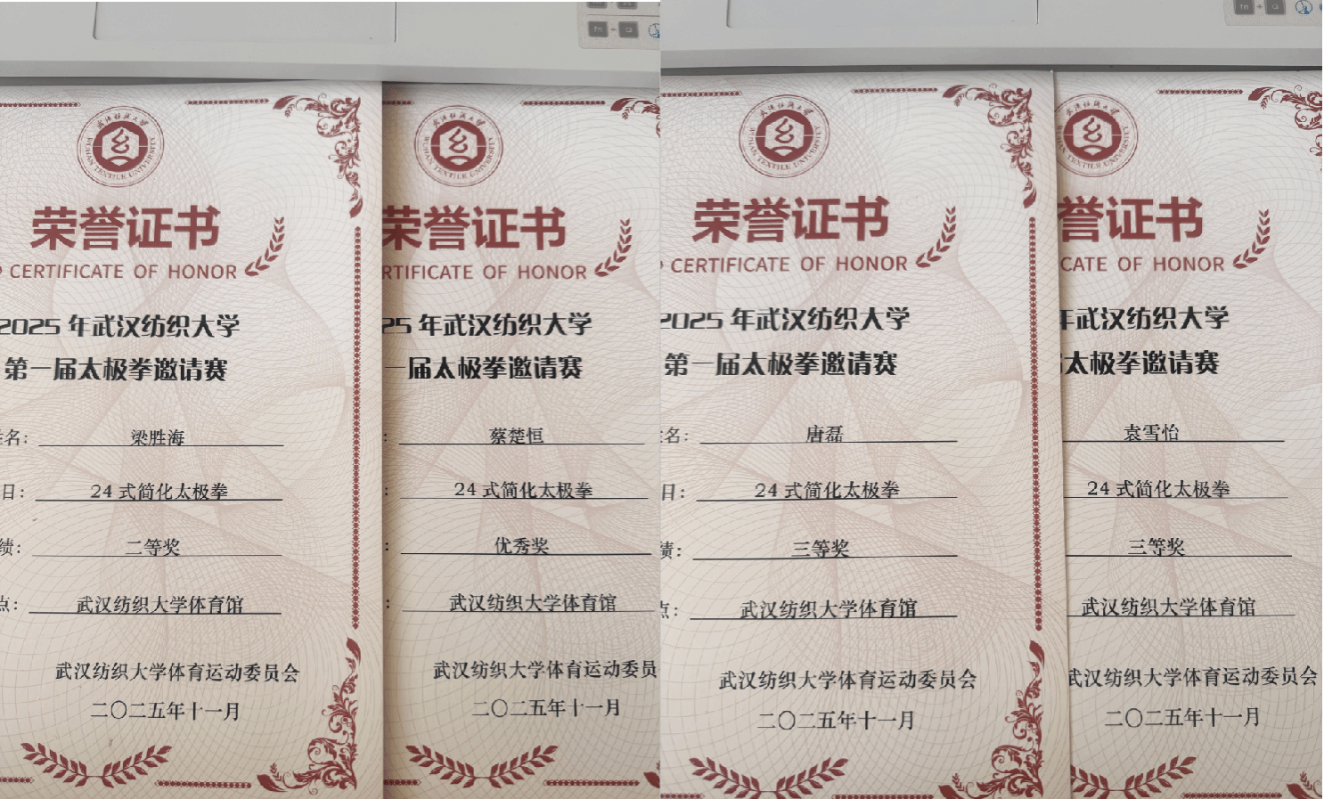 赛场上,材料学子将太极“刚柔相济、动静相宜”的精髓展现得淋漓尽致。梁胜海凭扎实武术功底获二等奖;唐磊、袁雪怡以规范招式与精准节奏把控获三等奖;蔡楚恒得优秀奖。