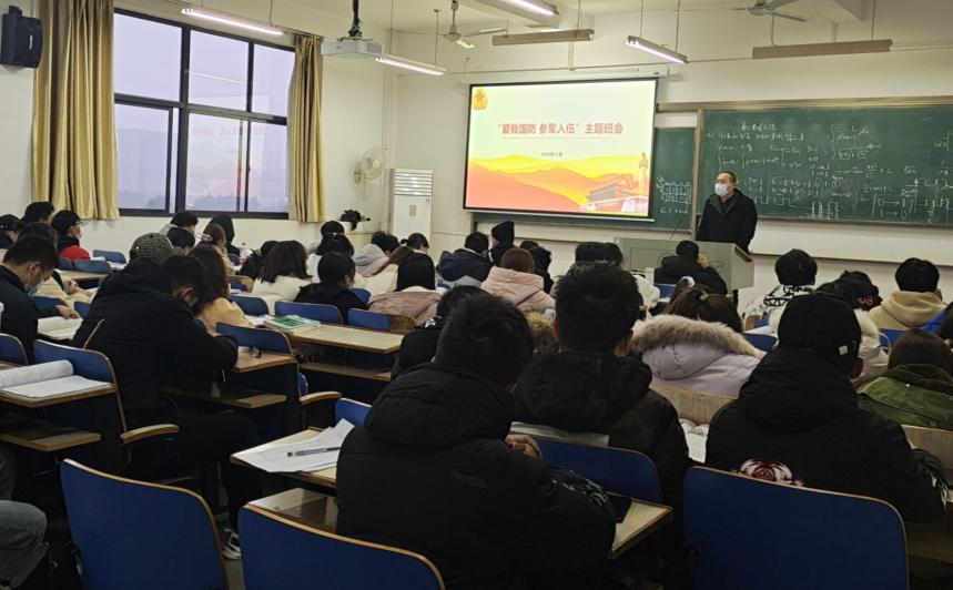 在教学楼3-409召开“爱过国防 参军入伍”主题班会,2020级学生和辅导员毛成兴参加了本次主题班会。