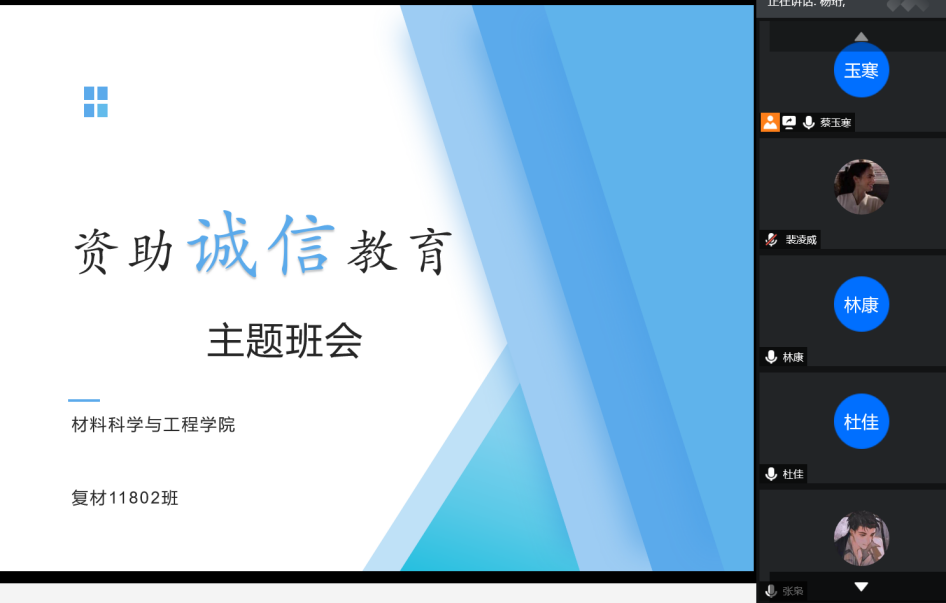 各班于6月15日开展了资助诚信教育主题线上班会。
