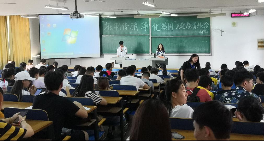 班会上,辅导员黄老师通过案例分析,向全体学生介绍了传销的种类、特征、危害以及学生误入传销组织后的正确应对方法。近期,正是大学生求职的黄金时间,一些地方传销组织利用职业介绍、招聘兼职、互联网经营、创新创意等幌子诱骗大学生参与传销的事件时有发生,严重侵害了学生的生命财产安全,相关的宣传教育活动迫在眉睫。
