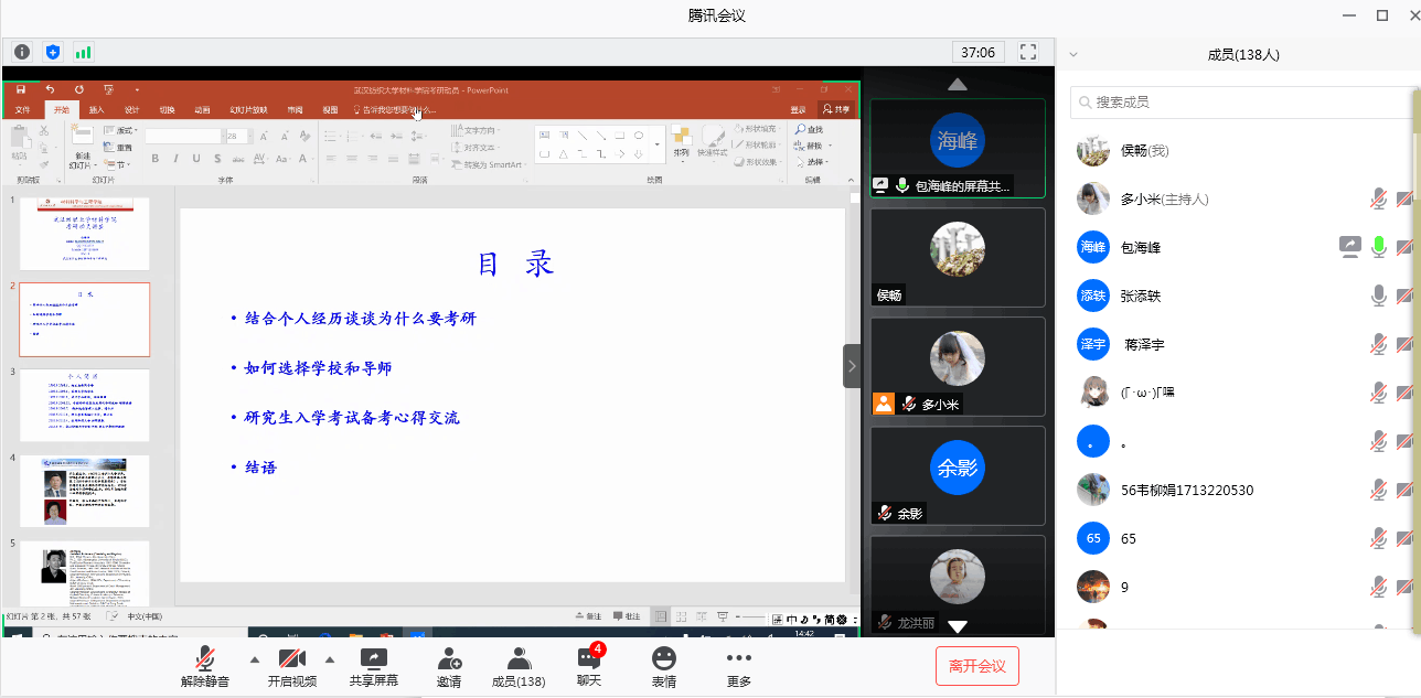 特邀副院长包海峰教授在腾讯会议平台开展线上考研指导讲座,全体2017级学生,部分2018、2019级学生参加了讲座。