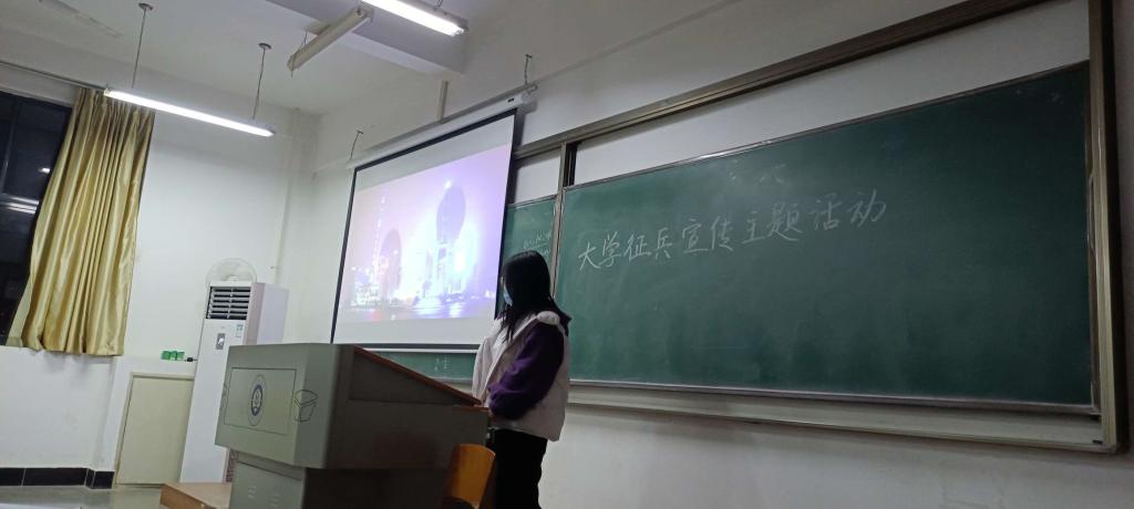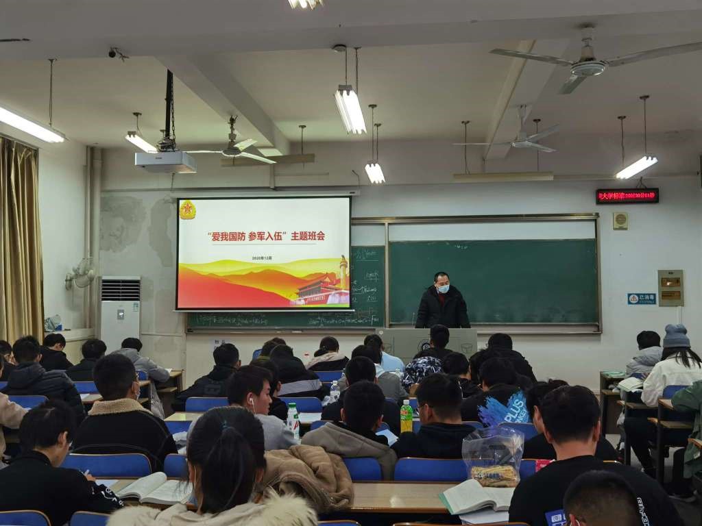 征兵工作站负责人、辅导员毛成兴采用政策集中宣讲、退伍大学生士兵交流汇报、班级主题班会的方式,深入细致地开展了征兵宣传工作。