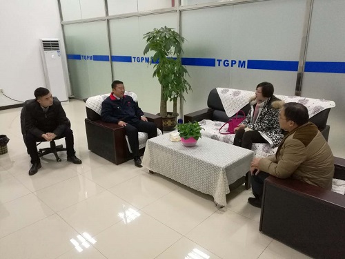 一行深入企业走访了就业学生,参观了企业的生产车间和员工的生活区,了解他们对工作的岗位适应情况、工资薪金水平、就业满意度。与企业负责人吕建功总经理进行了座谈,就加强校企合作、提高毕业生就业稳定度和满意度、做好91传媒进校园等工作进行了深入广泛的探讨。
