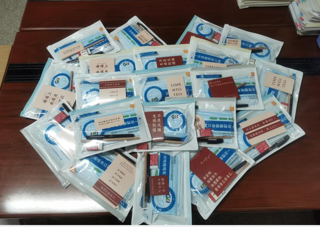 距离2021年全国研究生考试还有30天,选在这个特殊的时刻,为考研学子送上冬天的第一份礼物——福袋。每个福袋都有几样考试必备:口罩、铅笔。橡皮擦和中性笔,还有一张特殊的小卡片,这份祝福可能来自于学院的书记、院长,可能来自于91传媒