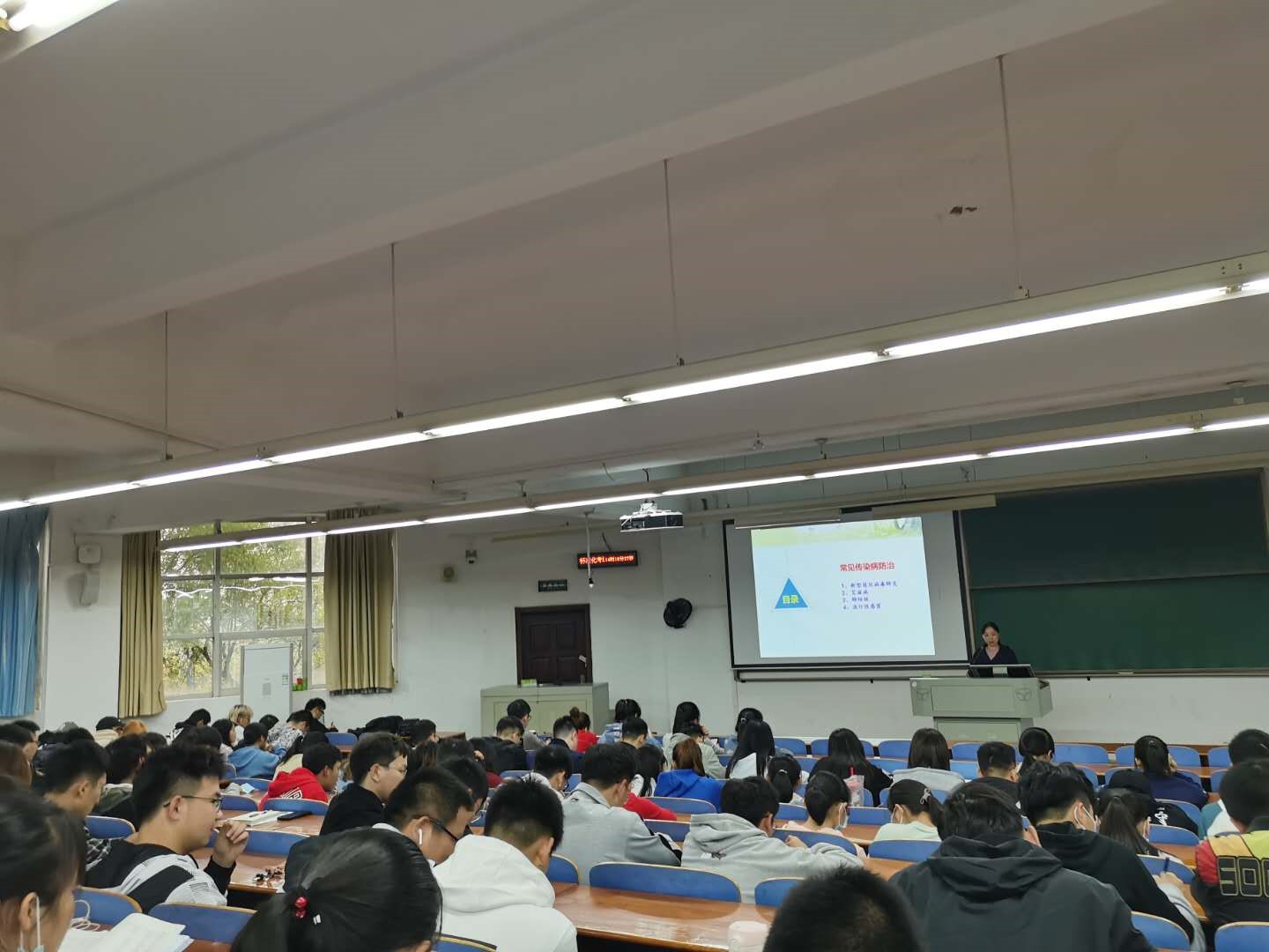 罗娜医生首先介绍了大学生医保的历史背景,然后讲述了普通门诊、急诊、医疗和管理等相关就医知识,最后详细介绍了新型冠状病毒肺炎、艾滋病、肺结核、流行性感冒等几种常见传染病的防治知识,并就如何预防和治疗做了深入讲解。最后,罗医生留下了校医院的电话(59367120),告诉同学们可以在身体不舒服时得到及时救治。