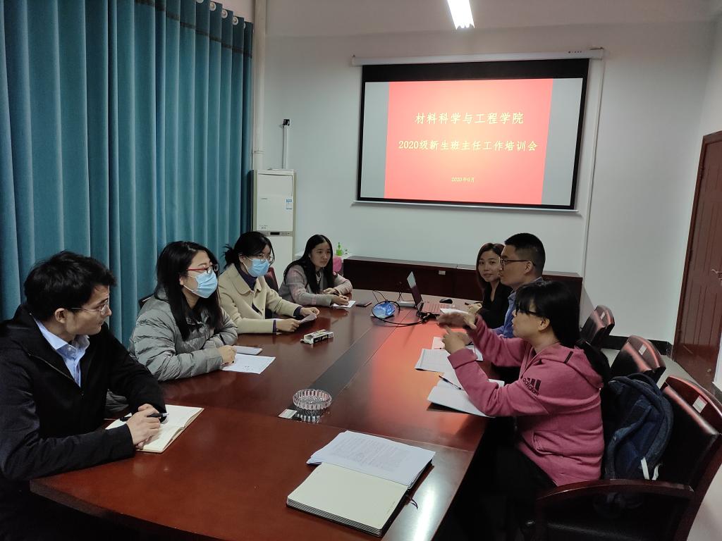 在8F-503召开2020级新生班主任培训会,部署新生班主任工作重点。学院副书记侯畅、各年级辅导员及全体新生班主任参加了会议。