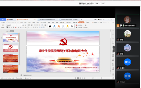 通过腾讯会议在线召开毕业研究生党员离校教育大会,学院党委副书记侯畅、研究生党支部支委及全体毕业生党员参加大会。大会由研究生党支部副书记曾凡佳主持。