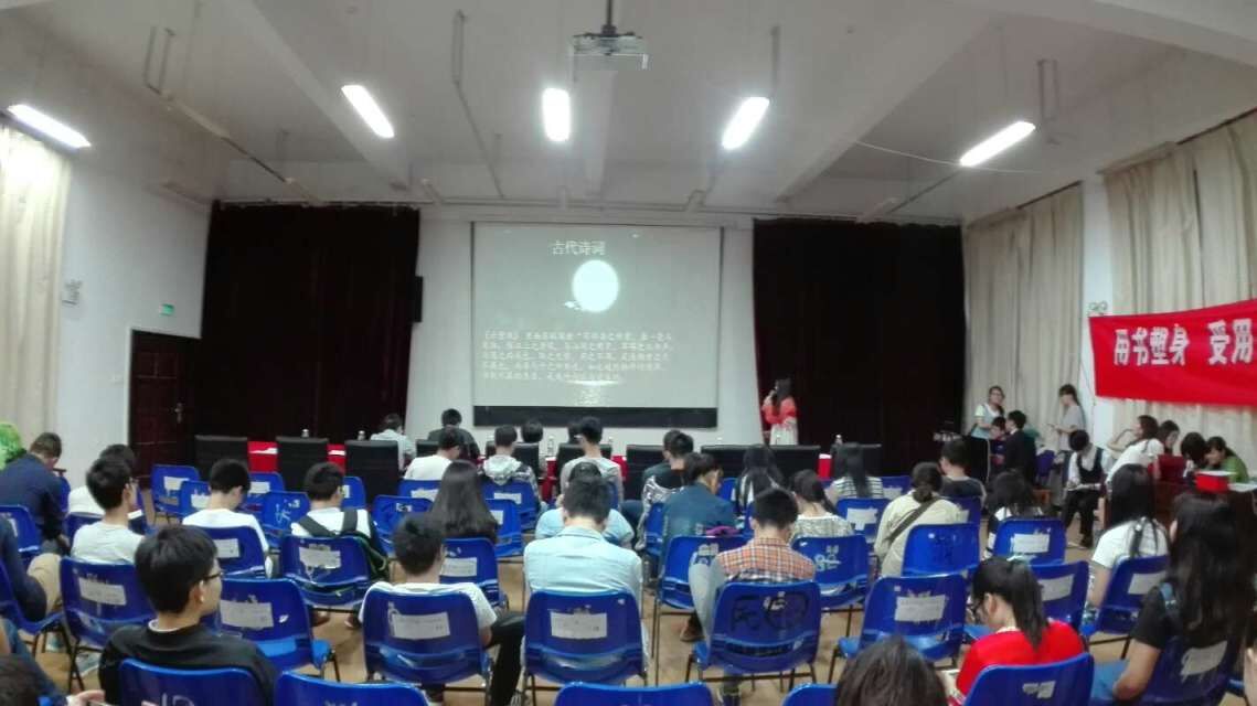 你的大学生活加速了吗?书籍是生活的加速器,由学工部、团委主办,91传媒 、电子与电气工程学院承办的 “全民阅读进校园”之“阅读伴我成长分享会”于2016年5月15日晚19:00在大活103举行决赛,一起为大学生活加速!学工部副部长曾令玉及各二级学院副书记出席并担任评委。