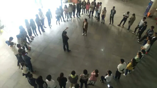 心理工作站的同学们先用“五角和一块”这个暖场游戏带动全体参加活动的同学的兴趣,激发起大家游戏的欲望,同时一点欢乐的惩罚表演让整个游戏显得轻松愉快。