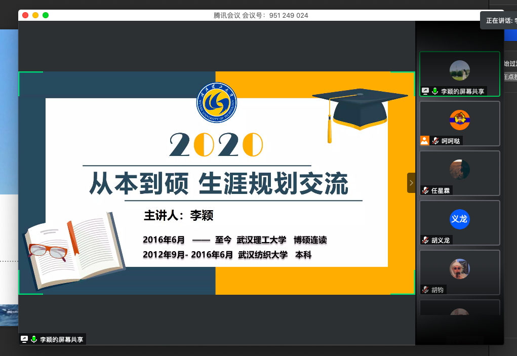 2016届优秀毕业生、武汉理工硕博连读的李颖主讲,会议由朱亮同学主持。
