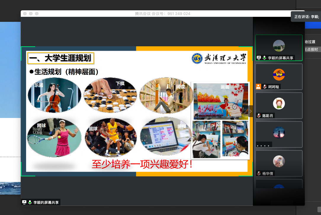 对于工作和考研这两项人生选择题,李颖也用自身经历向同学们阐述了生涯决策的方法和流程,并向云端的学弟学妹们分享了自己考研的心态与方法,引导大家学会如何明确自己的目标。她寄语同学们,做科研和考研都要不怕吃苦,具备扎实的专业知识,多观察,多思考。